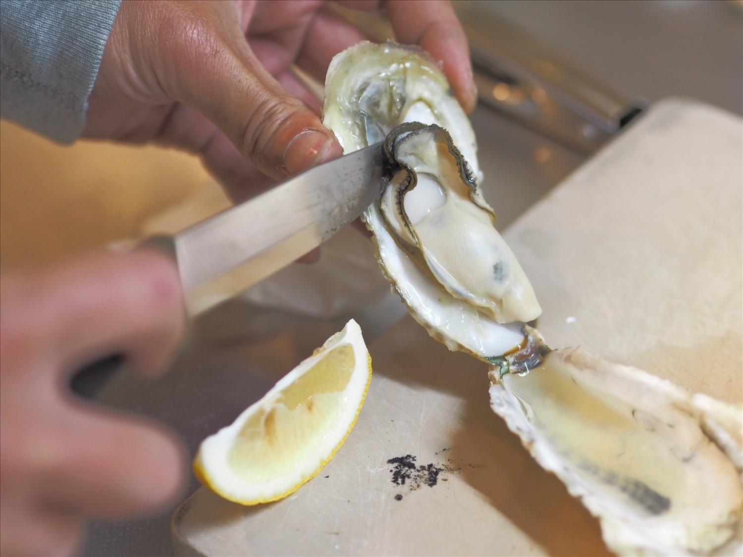 道の駅みつで牡蠣を買って、部屋で炉端焼き