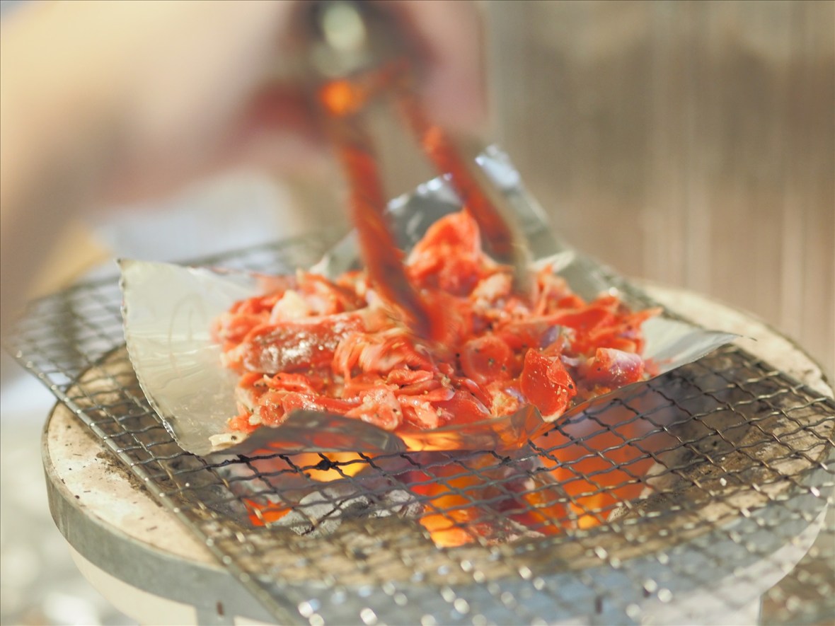 道の駅みつで牡蠣を買って、部屋で炉端焼き