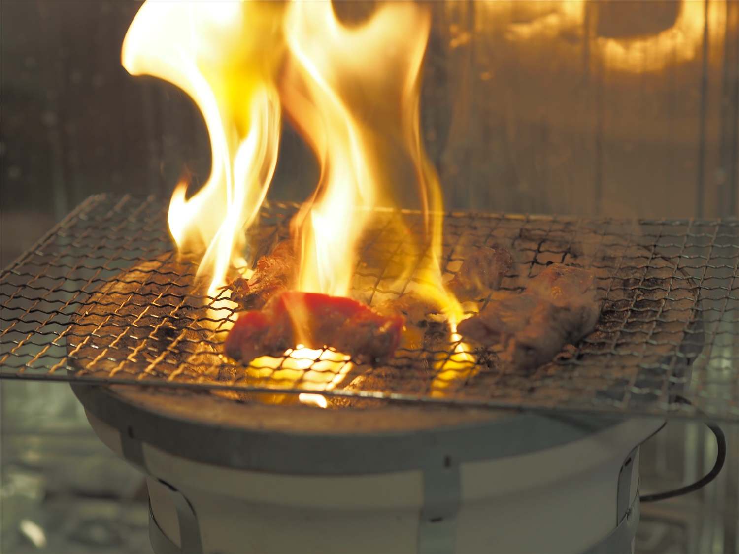 道の駅みつで牡蠣を買って、部屋で炉端焼き