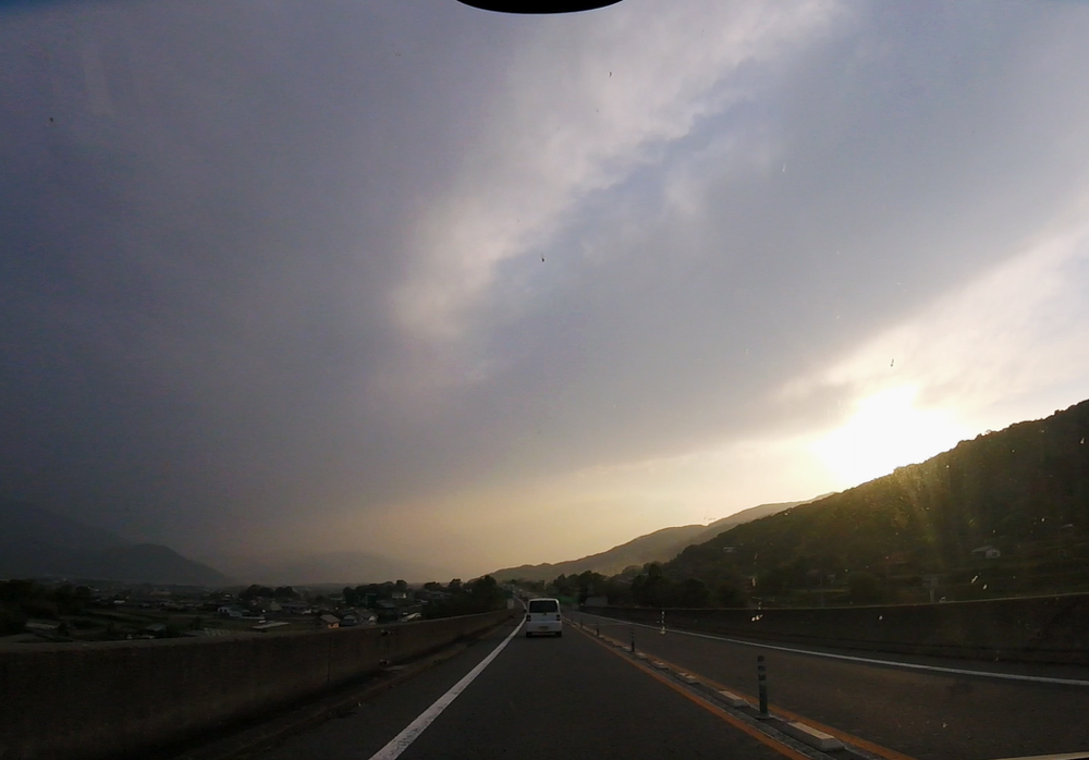 四国へ入り徳島道を進んで行くにつれ、雲行きがなんだか怪しい。。。大丈夫か。。。