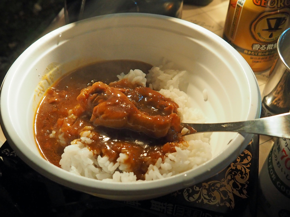 今日は簡単にレトルトカレーとサトウのごはんで腹を満たします。