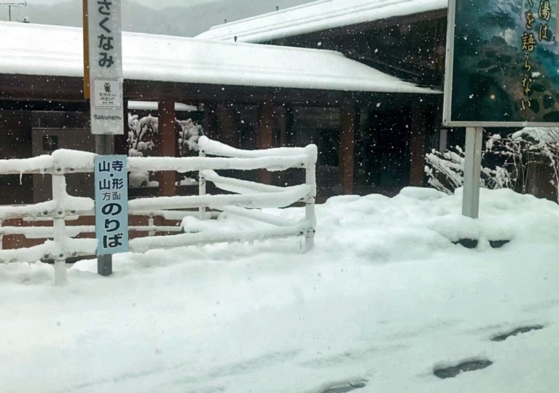 さて山寺を出発し、予定より一本遅い列車の乗車で一時間遅れまして、更に列車が雪の影響でさらに途中駅でしばらく足止め(電車内で爆睡していたため気づかず💦)の為、山形で温泉を訪れる計画は難しそうです。