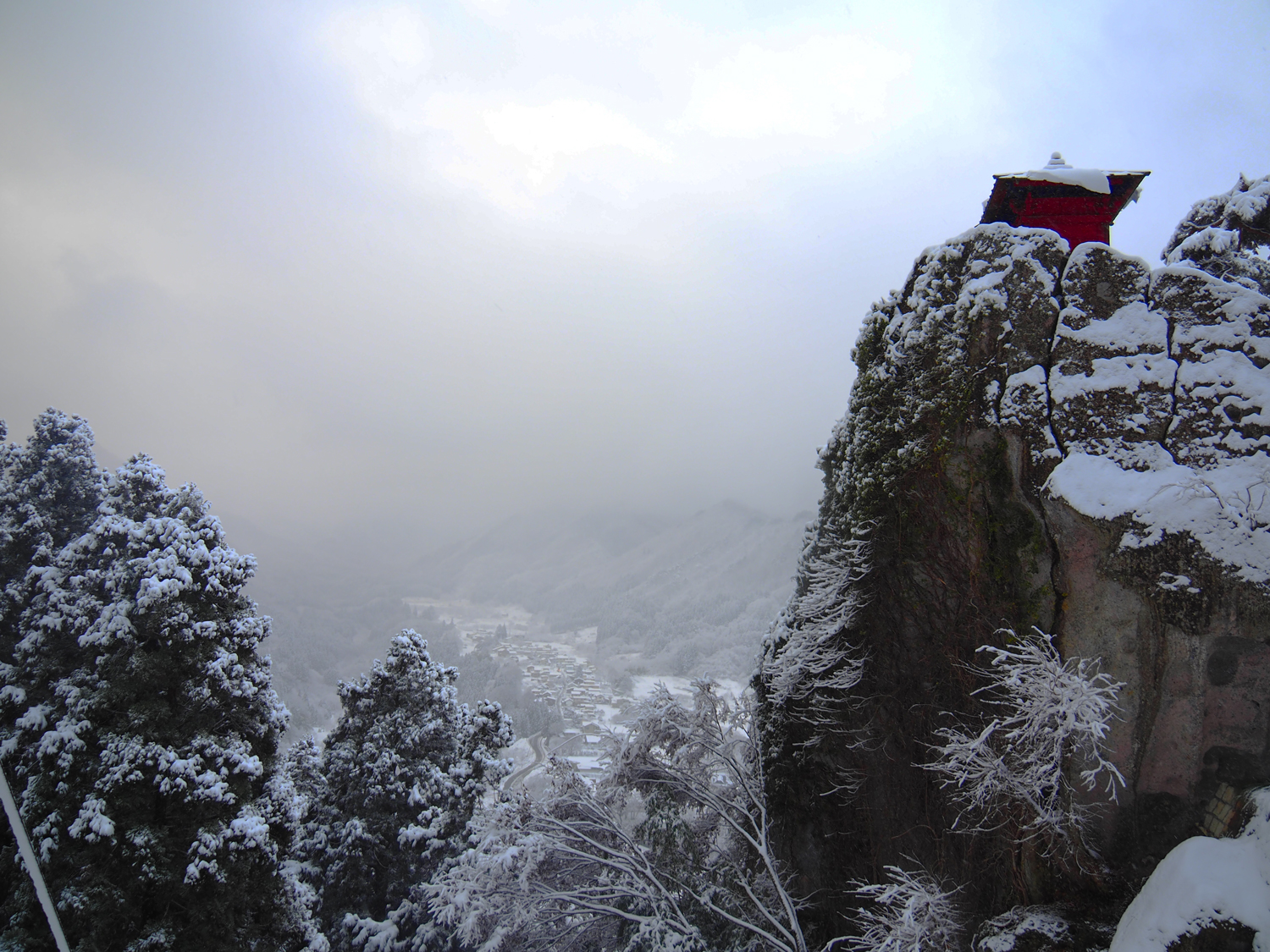 約1000段の石段を登り、奥の院、そして今回一番訪れたい五大堂から雪景色のパノラマを楽しみたいと思います。