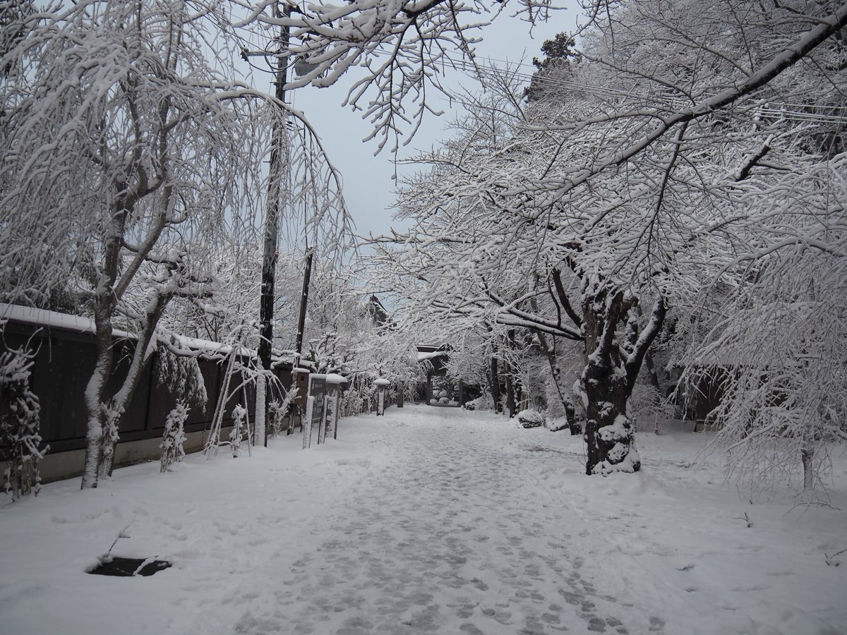 山門を抜け、下山口へと向かいます。雪に彩られた抜苦門までの通りの情景もまたいい感じ^^
