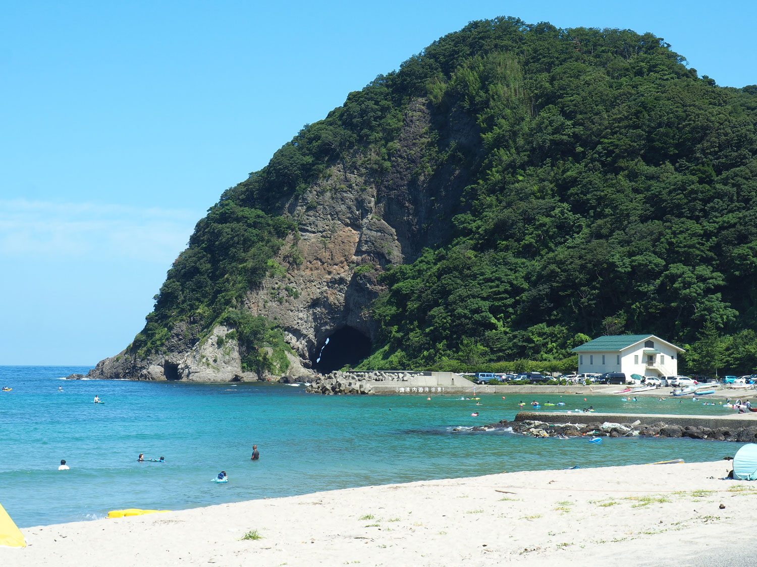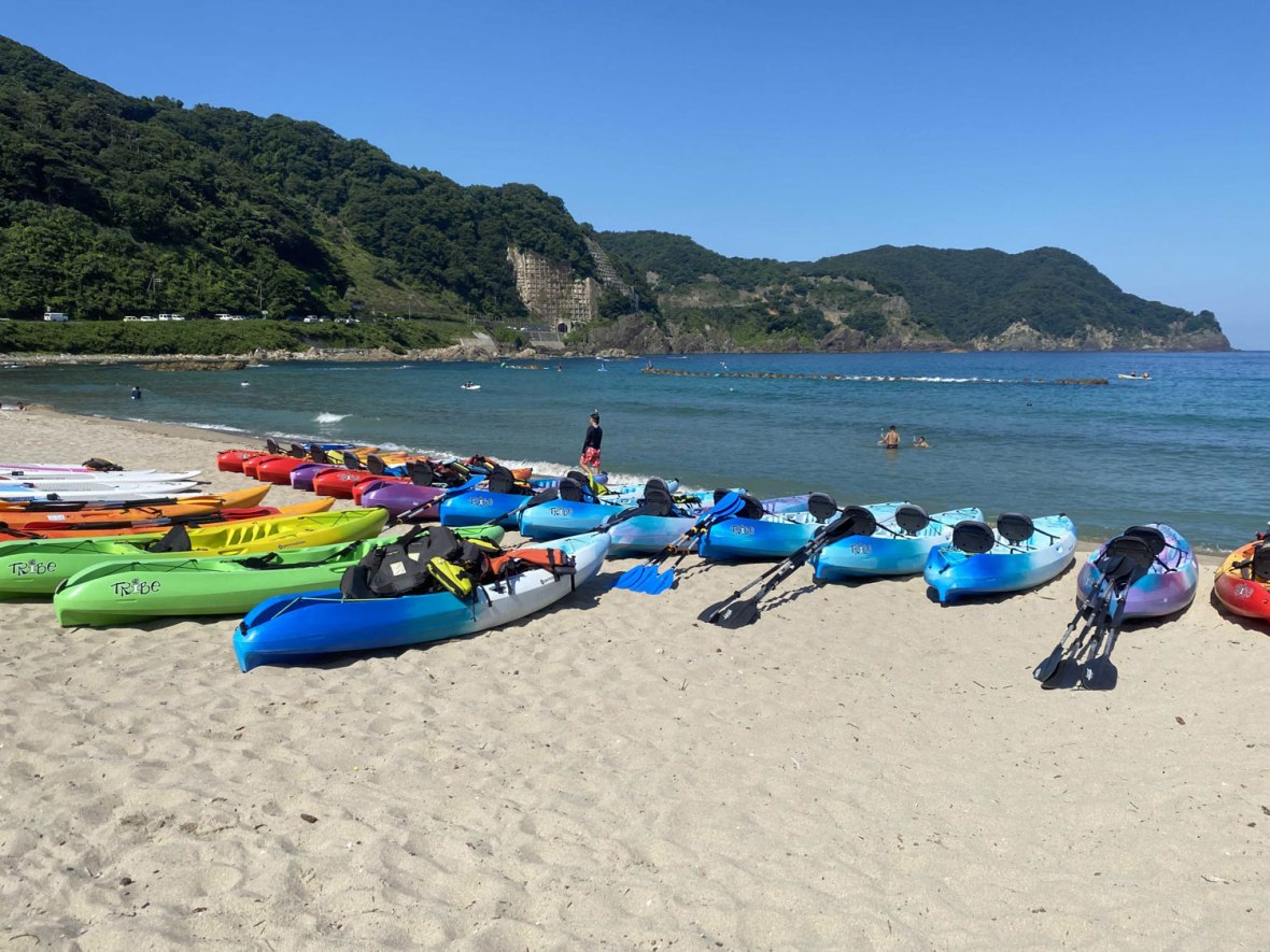 竹野の中でもここ切浜海岸は、奇岩が周辺に散らばり海水浴のみならず、シーカヤックやシュノーケリング、ダイビングなどのマリンアクティビティが充実しています。