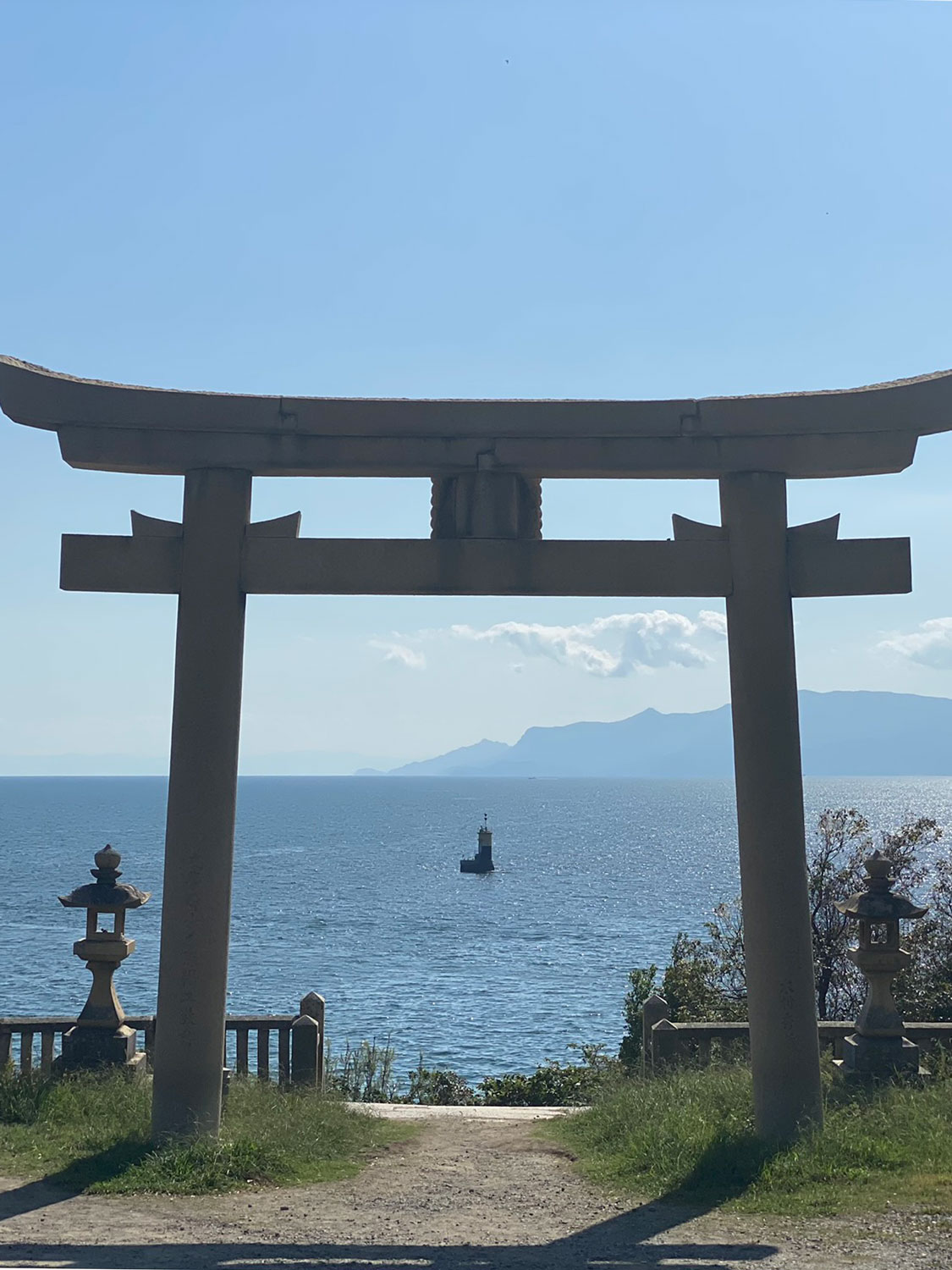 海に向かって鎮座する社殿です。航海安全や縁結びの神様として信仰を集めています。