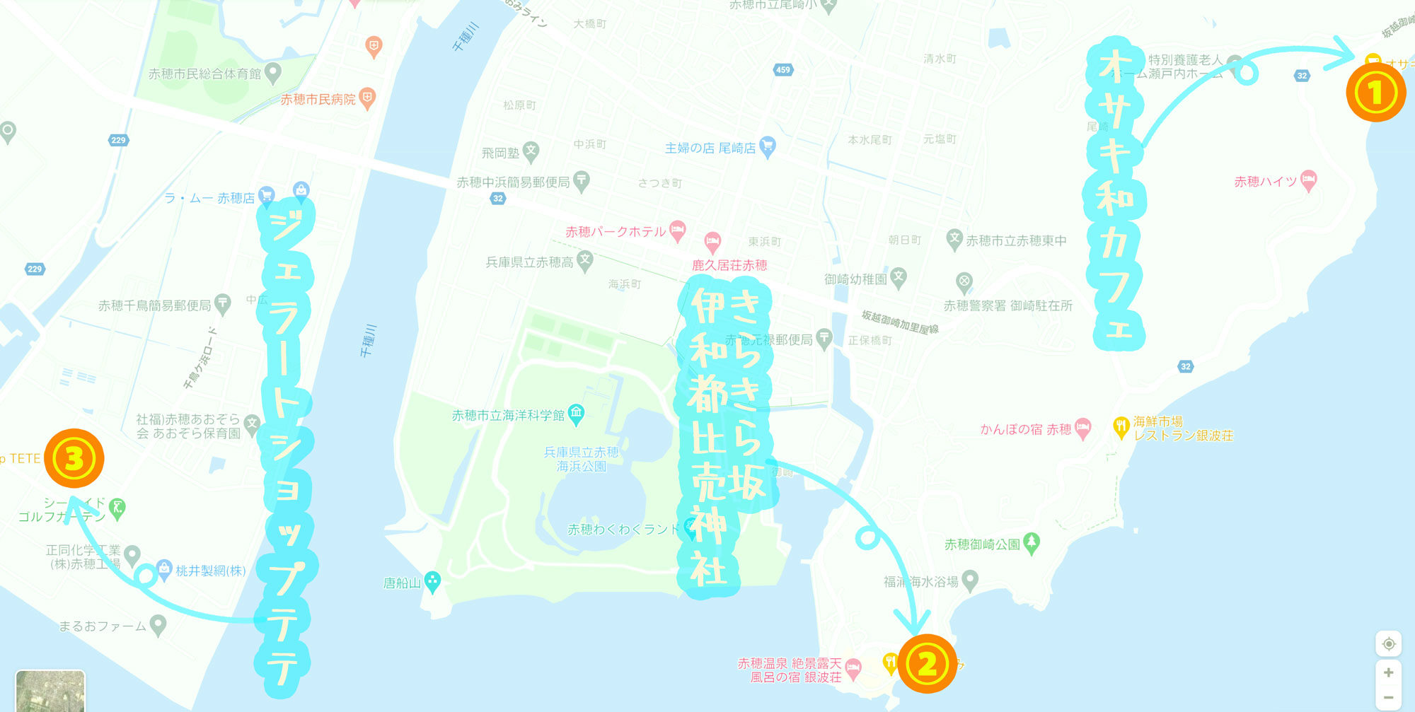 赤穂は温泉もあり、景観の良い海水浴場や歴史めぐりなどたくさんの見どころがありますが、観光エリアは大きく分けると、赤穂中心地区、尾崎・御崎地区、坂越地区、有年地区の4つの地区に分かれます。