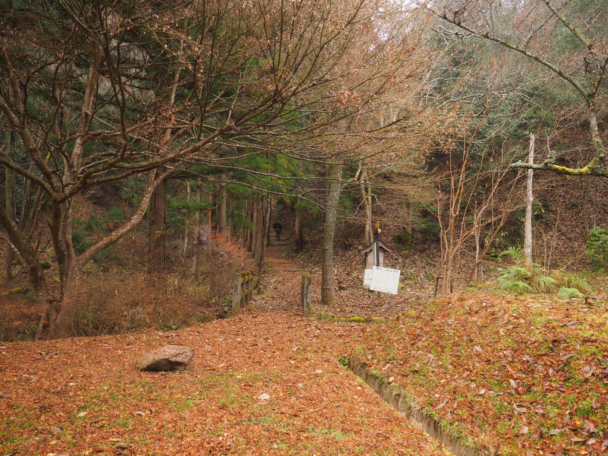 出石町の町を抜け林道を約一キロ少し走ると、道のどんつきに東屋が目に止ります。