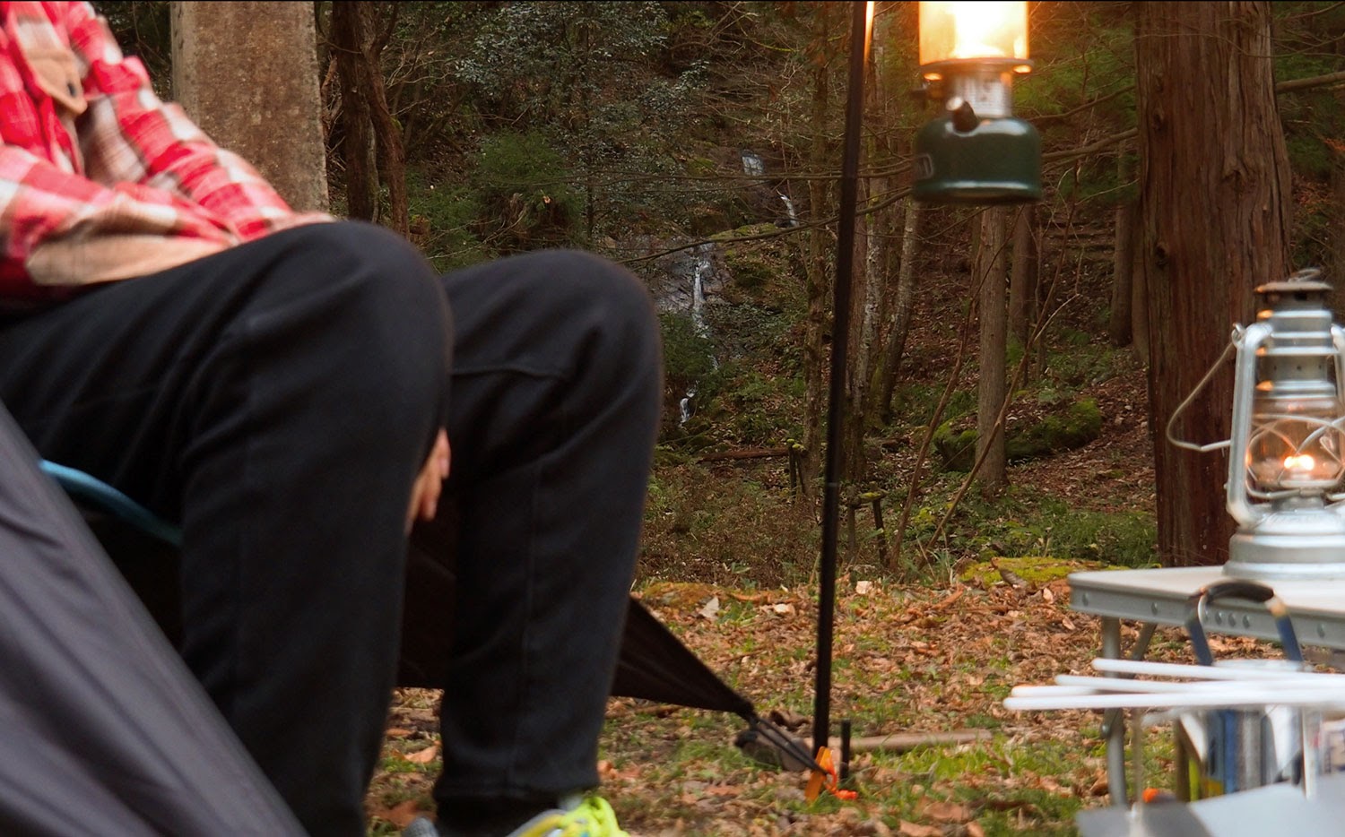 少し日が落ちてきました。山奥は日が落ちるのが早いので暗くなる前に設営を終わらせたいと思います。