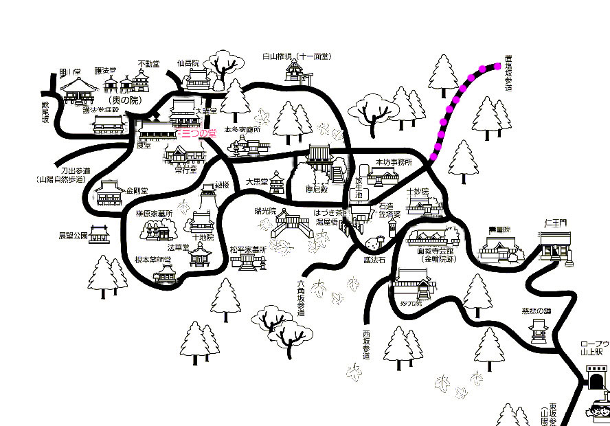 円教寺を参拝後、書写山の三角点を経て行者堂を目指します。