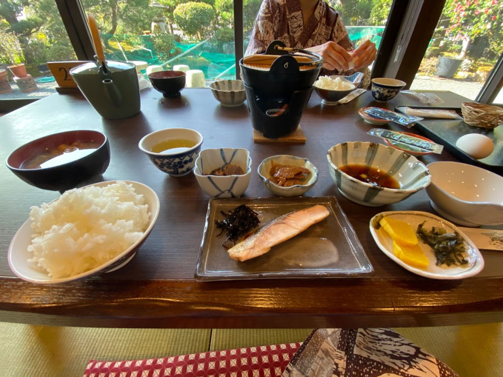 昨夜は檜風呂でしたが今朝は岩風呂を堪能できるようです。