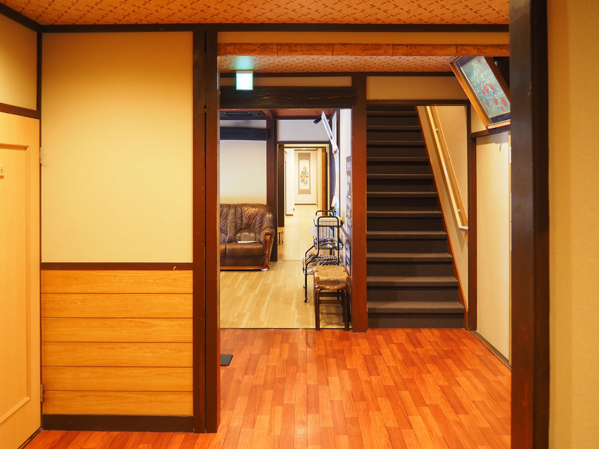 今回は「和モダン」と言うお部屋を予約いたしました。階段を登り二階廊下へ進みます。