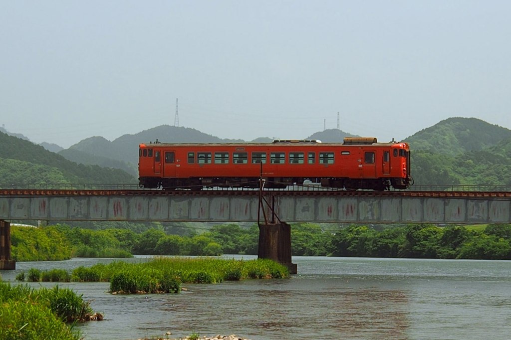 阿武川が2つの川に分かれる、三角州の先っぽで列車の撮影をいたします。
