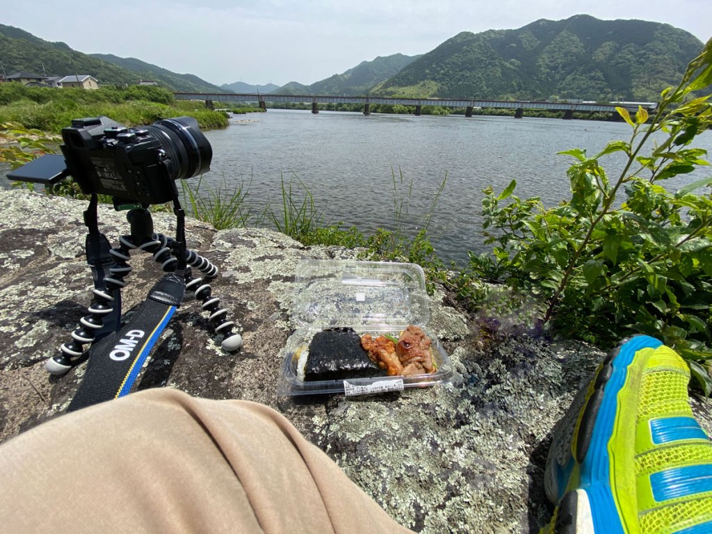 途中川を渡ってコンビニに寄り道して昼ご飯を買い込みました。