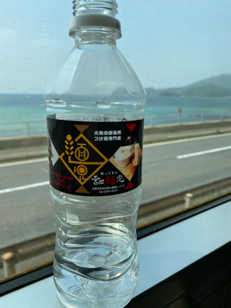 昨日の夜行バスの乗車の際サービスで貰ったお水で喉を潤しながら、列車はゆっくりと日本海を東へ進みます🚃