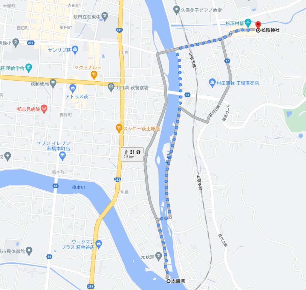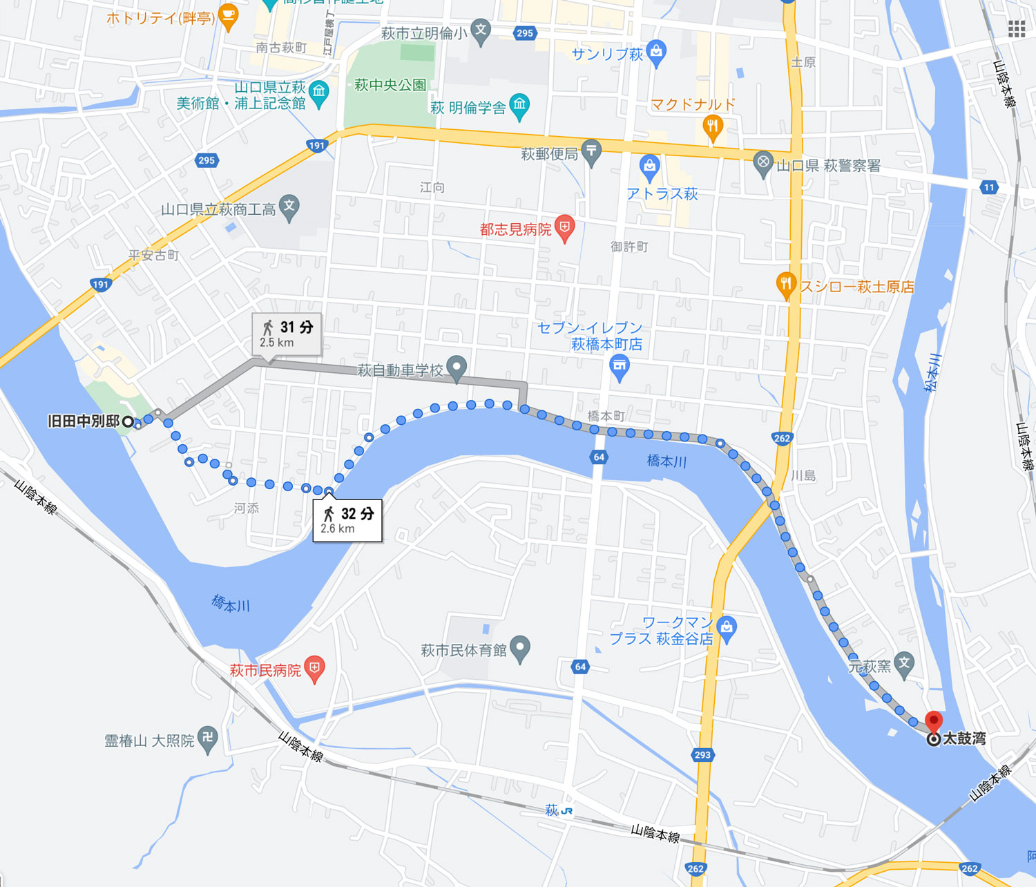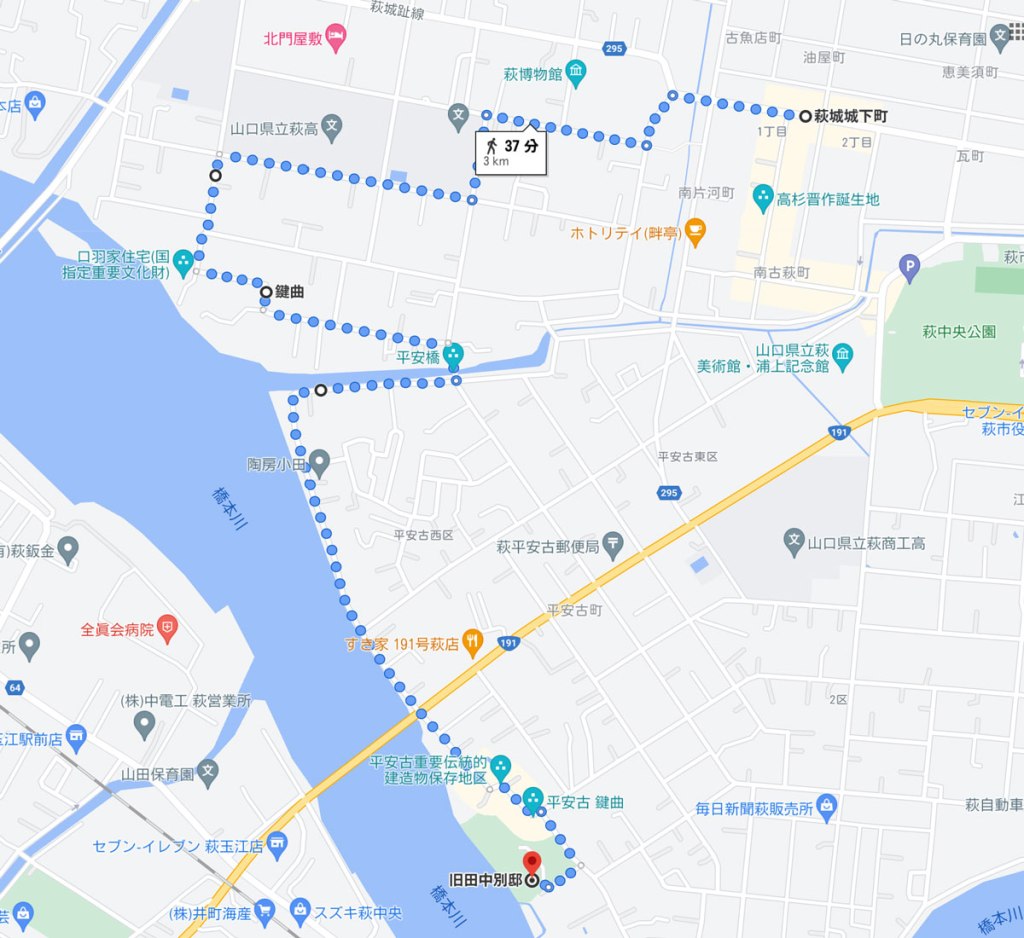 萩は地形はもとより、町割りや町内を走る道筋が昔からほとんど変わっておりません。