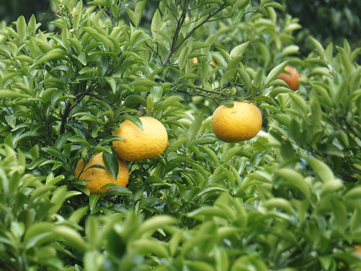 隣には、かんきつ公園がありたくさんの夏ミカンが生っています。ここで少し小休憩し公園内を歩いてみます。