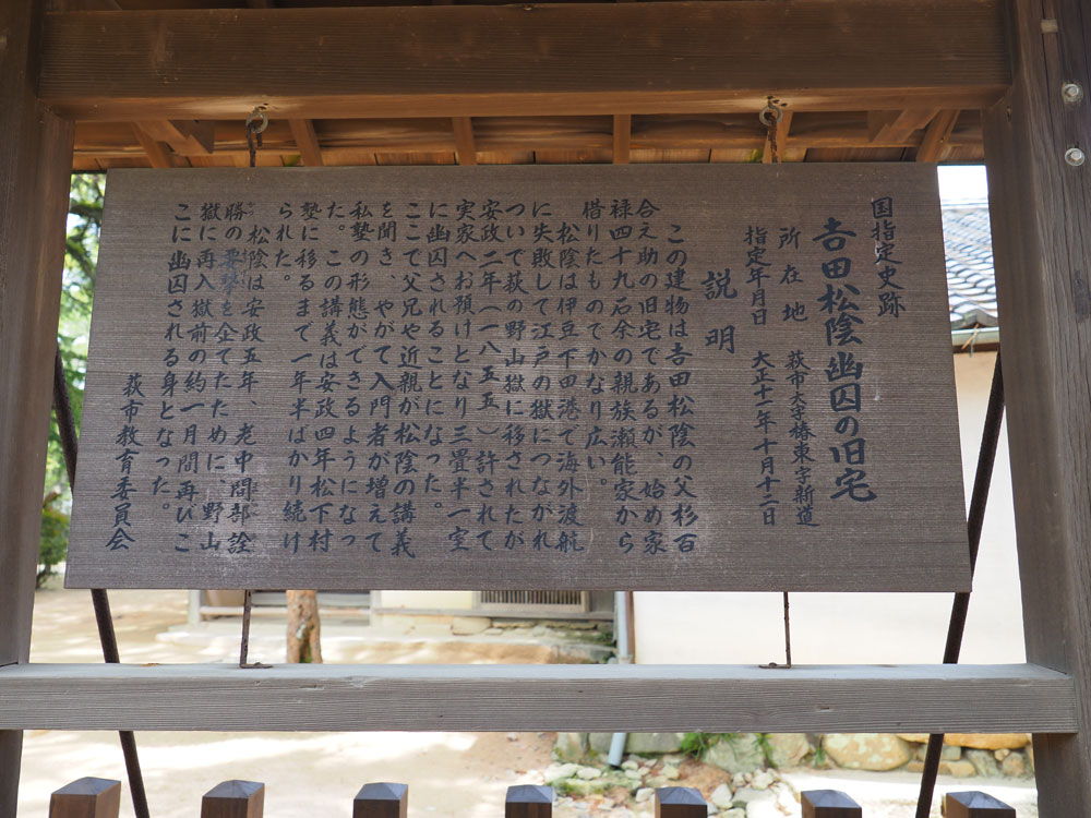 松陰神社の境内は、一番奥に本殿が鎮座し、当時からこの地に建っていたユネスコの世界文化遺産にも登録されている「松下村塾」や「吉田松陰幽囚ノ旧宅」などを拝観することもでき、その他松下村塾縁の建物また石碑などを「学びの道」と言う散策道を歩きながら見て回ることができます。