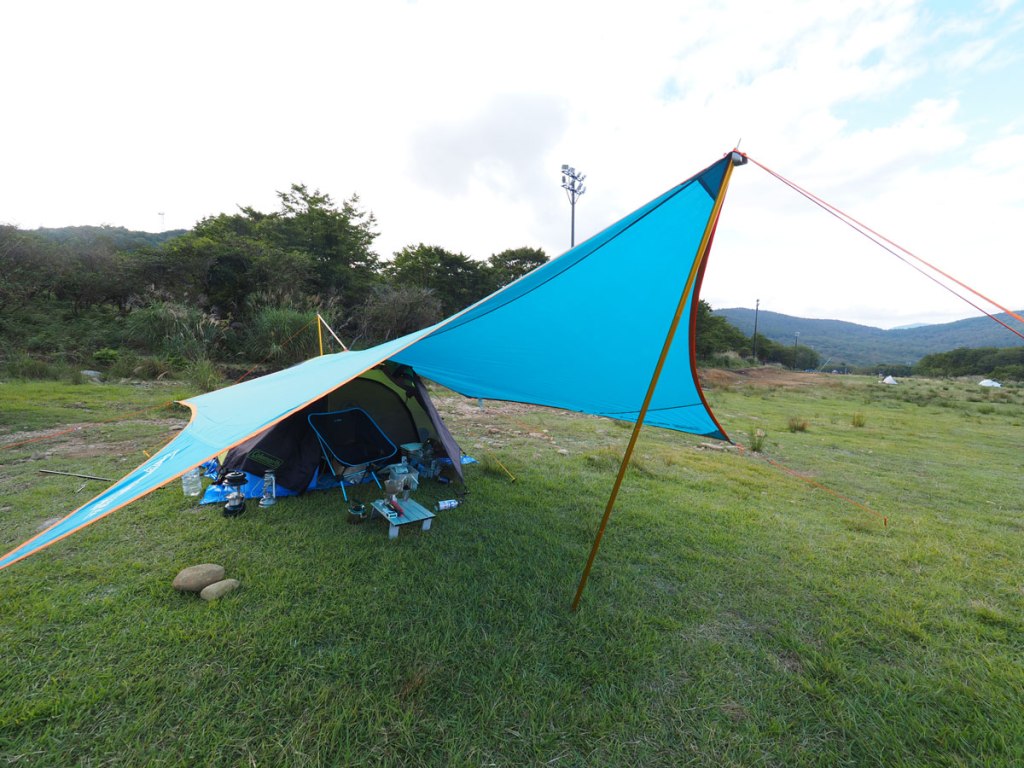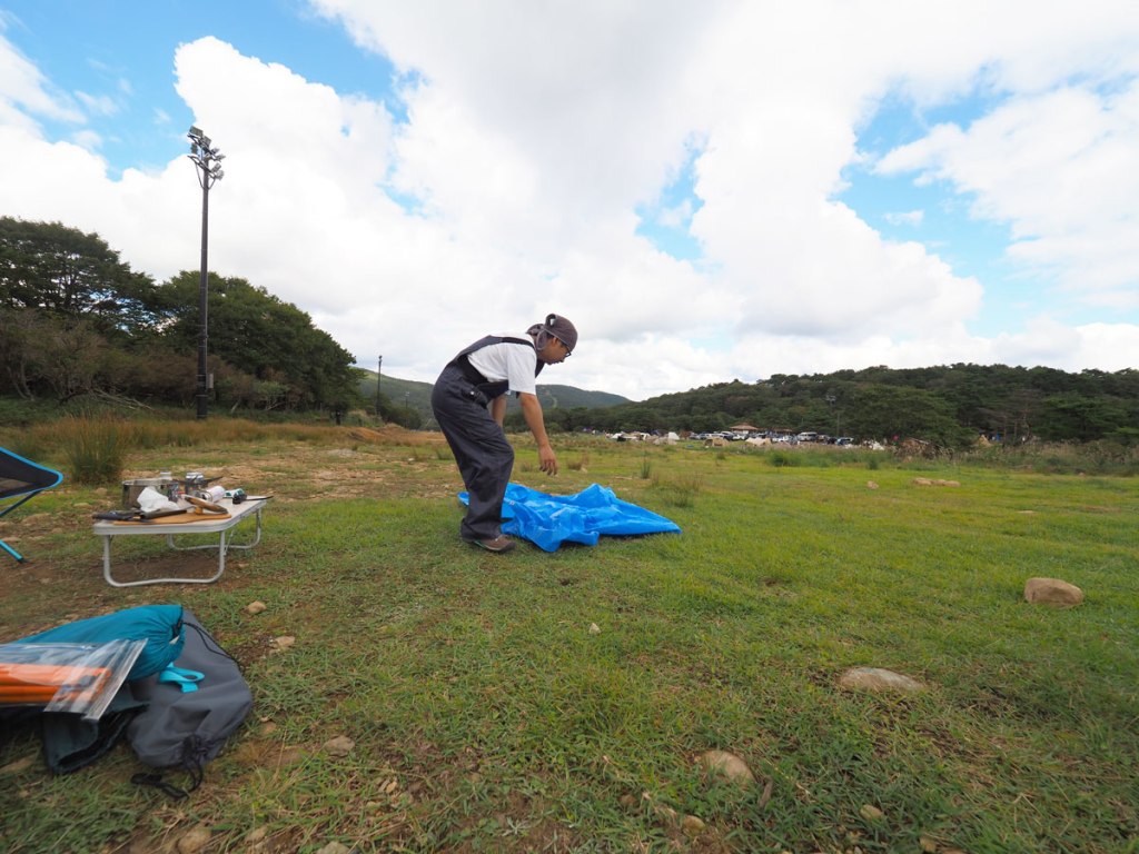 一瞬で完食し一服すればテントを張りましょうか。