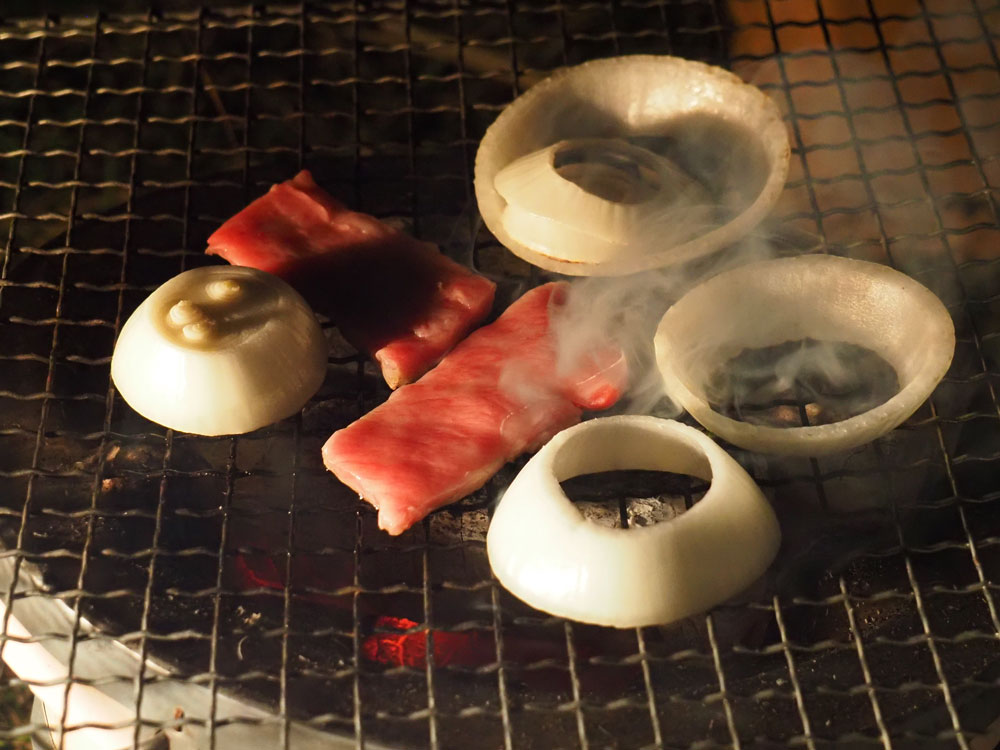 夜も更け、七輪でちびちびアテを焼きながらお酒タイム。