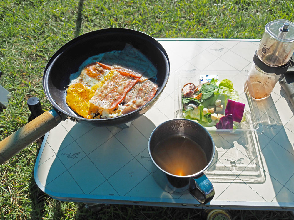 いやぁ、朝日を浴びながらのキャンプ飯は本当に美味い!何でも美味しく感じます♪不思議ですねw