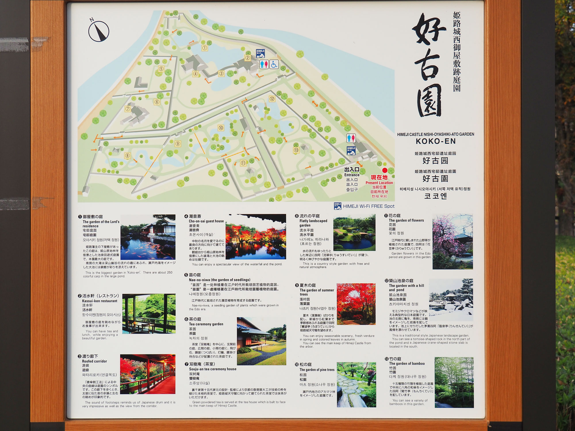 好古園、正式名は姫路城西御屋敷跡庭園好古園と呼ばれ、姫路侍屋敷図を基に特別史跡地の姫路城西御屋敷跡で発掘調査で確認された西御屋敷・武家屋敷等の遺構をそのまま生かして作庭された総面積3.5ヘクタールの池泉回遊式庭園群です。