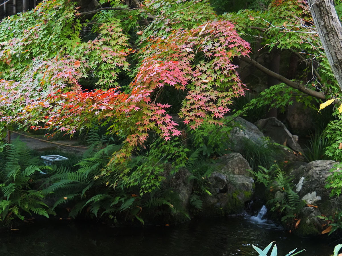 ここも少し早い時期でしたが、緑から赤く染まり始めるモミジが趣があるコントラストを醸し出しておりました。