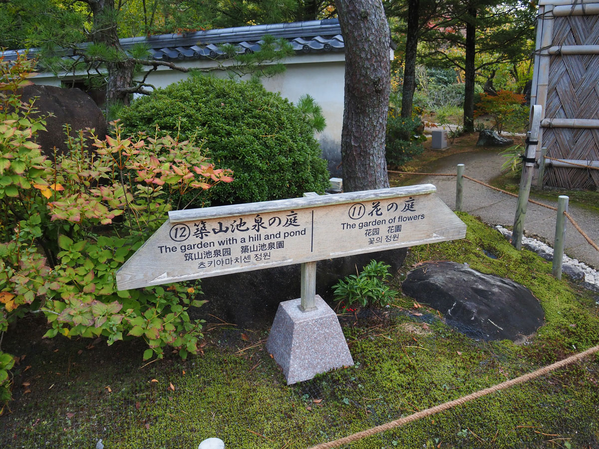 9つの日本庭園で構成されていて、それぞれが武家屋敷の家並みを彷彿とさせる土壁や白壁で区切られています。