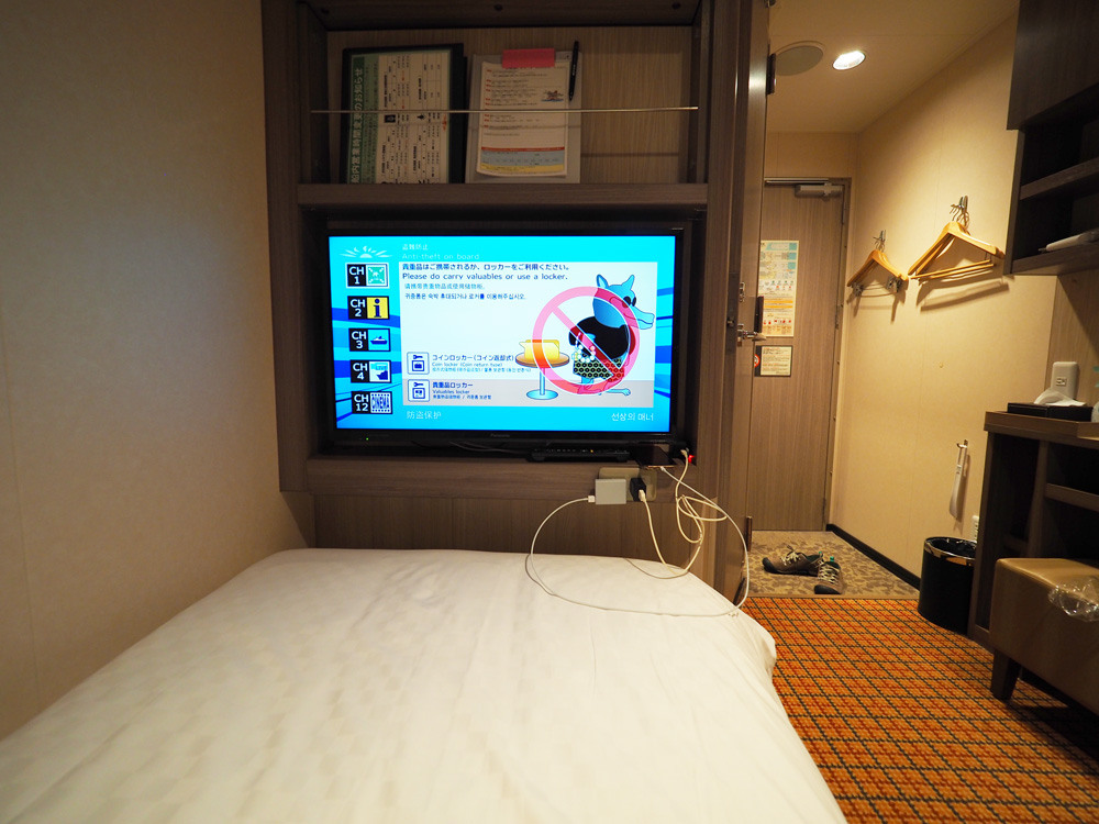 太平洋航路の場合テレビは地デジがほとんど映りません。ただBSが豊富に見れるため私は普段見れないBSチャンネルを楽しみました。
