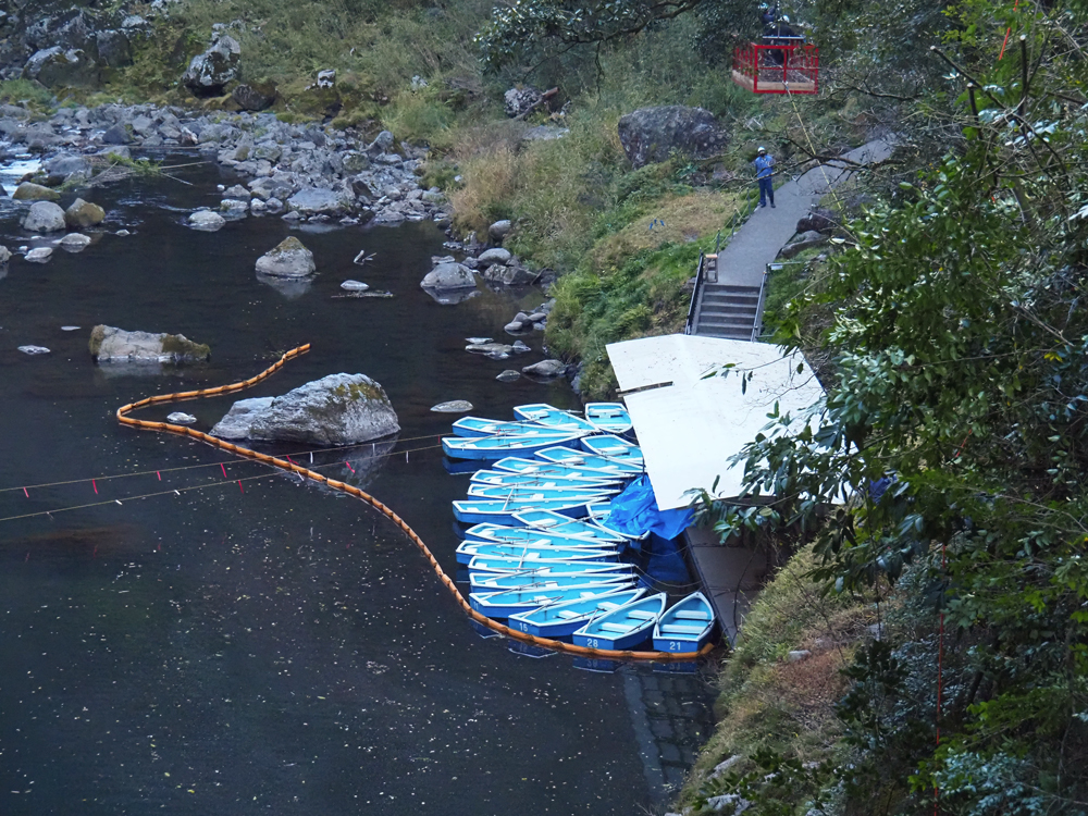上流側の方が特に高低差が大きく、駐車場も上流側の方が無料、中間の駐車場が300円、下流側のボート乗り場駐車場が600円と高くなります。