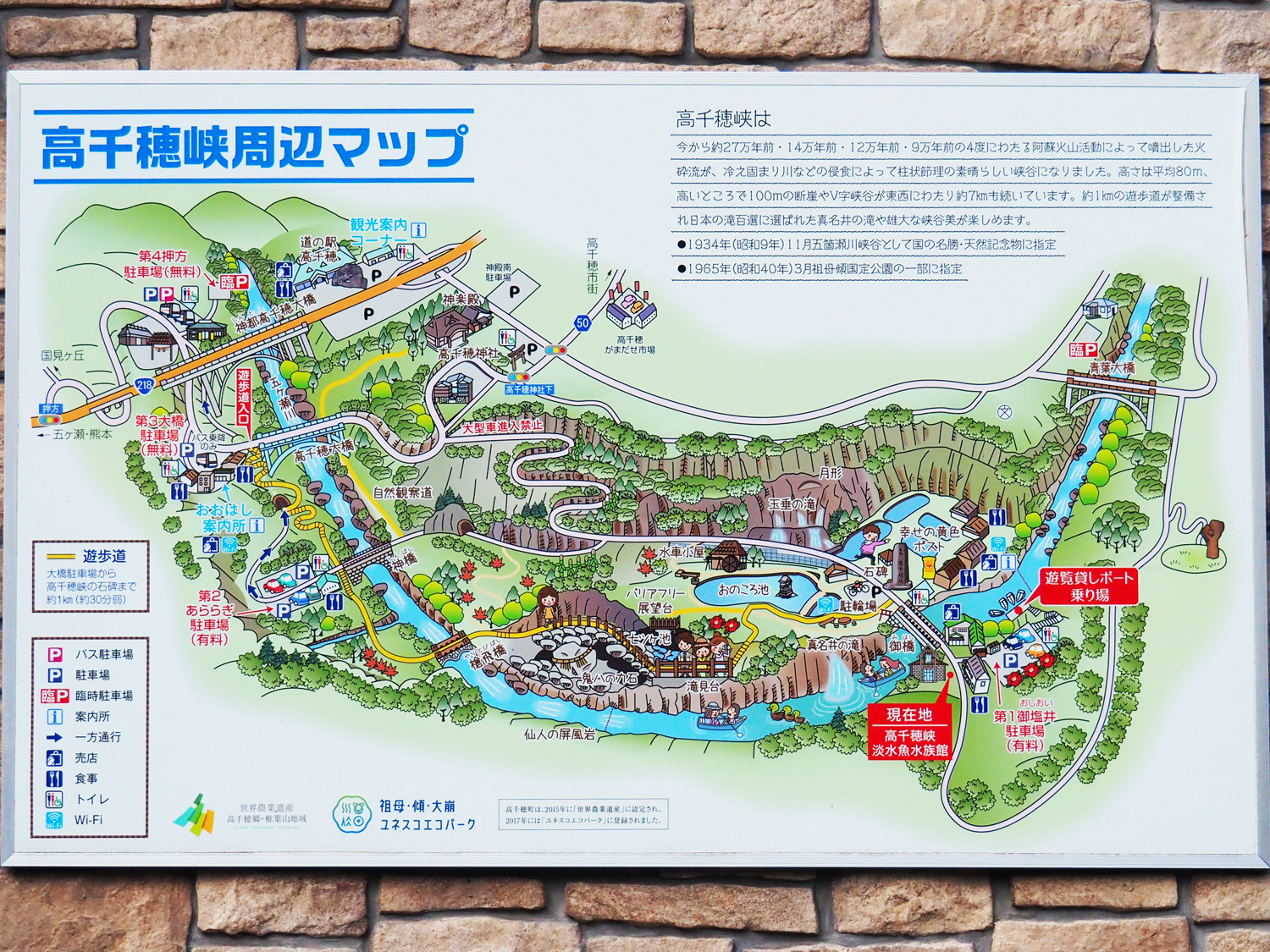 駐車場代が無料の高千穂大橋駐車場へ車を停めて、遊歩道を歩いていくことにいたしましょう。