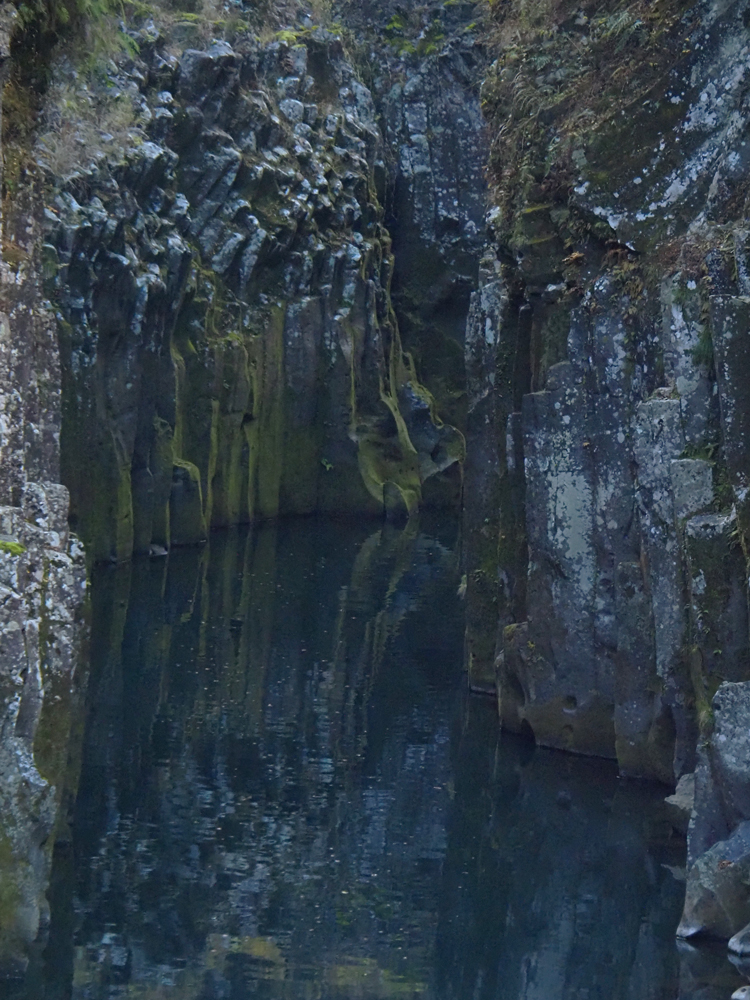 そして、柱状節理が美しい岩肌が見えてまいりました。これぞ高千穂峡と言う雰囲気に包まれてきます。