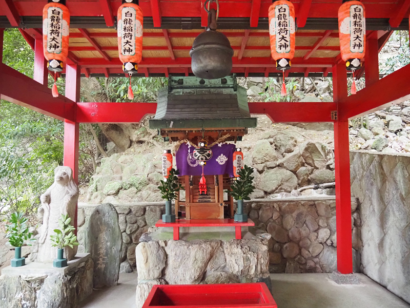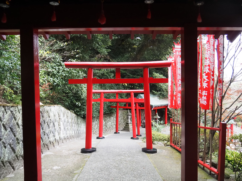 地獄の畔には別府白龍稻荷大神が鎮座し、真っ赤な鳥居が並びます。