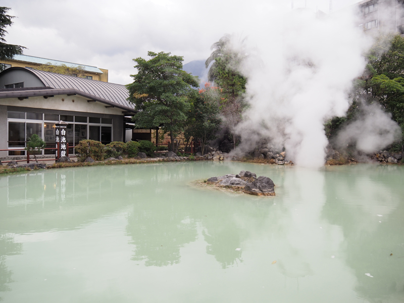 続いては、鉄輪温泉へ続くみゆき坂を少し下って「白池地獄」へ到着です。