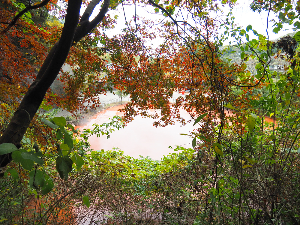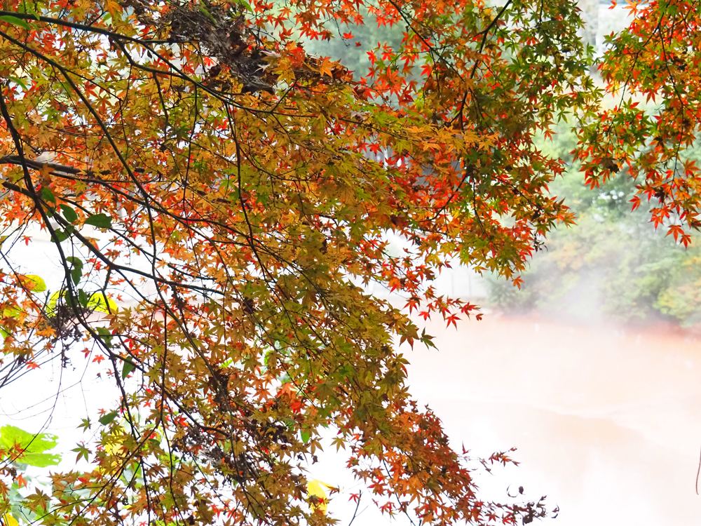 紅葉の時期、色付いた紅葉と真っ赤に染まる地獄の色合いがとても美しく、私は7つの地獄な中で一番印象に残りました。