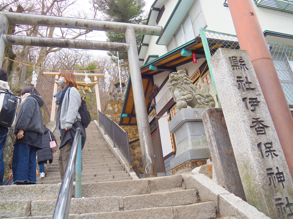 はぁ~、少し石段に疲れてきたころ、伊香保神社が見えてきました。