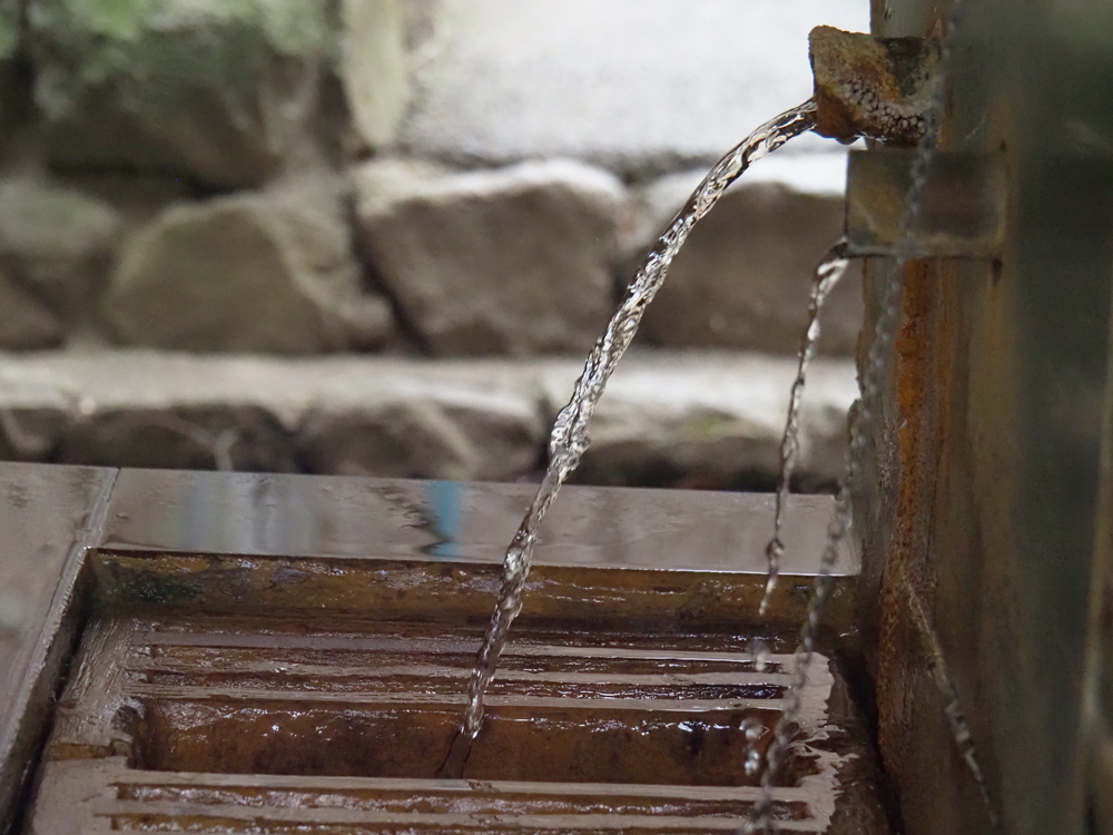 石段街と呼ばれるこの界隈の階段の下には黄金の湯の源泉が流れ、上の写真のような小間口と呼ばれる引湯口から各旅館に分湯されています。