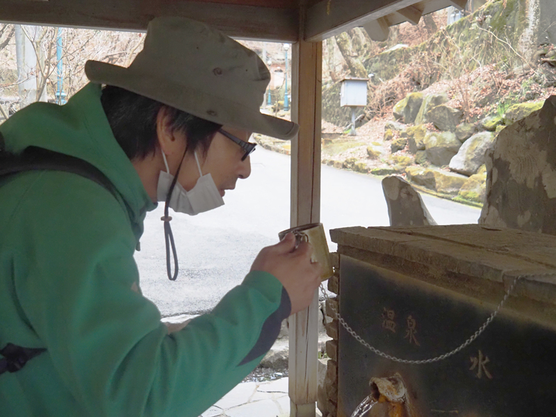 温泉飲泉所がありちょっと飲んでみましょう。