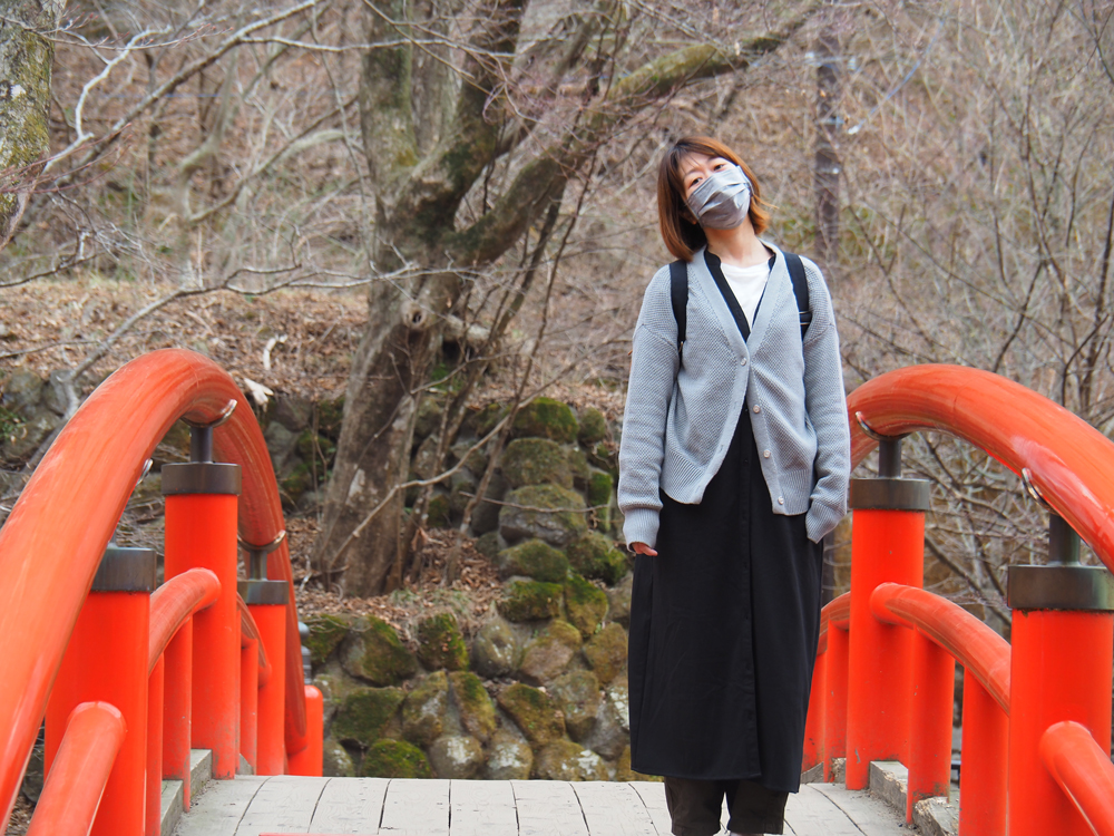 色鮮やかな真っ赤な橋が印象深い河鹿橋。