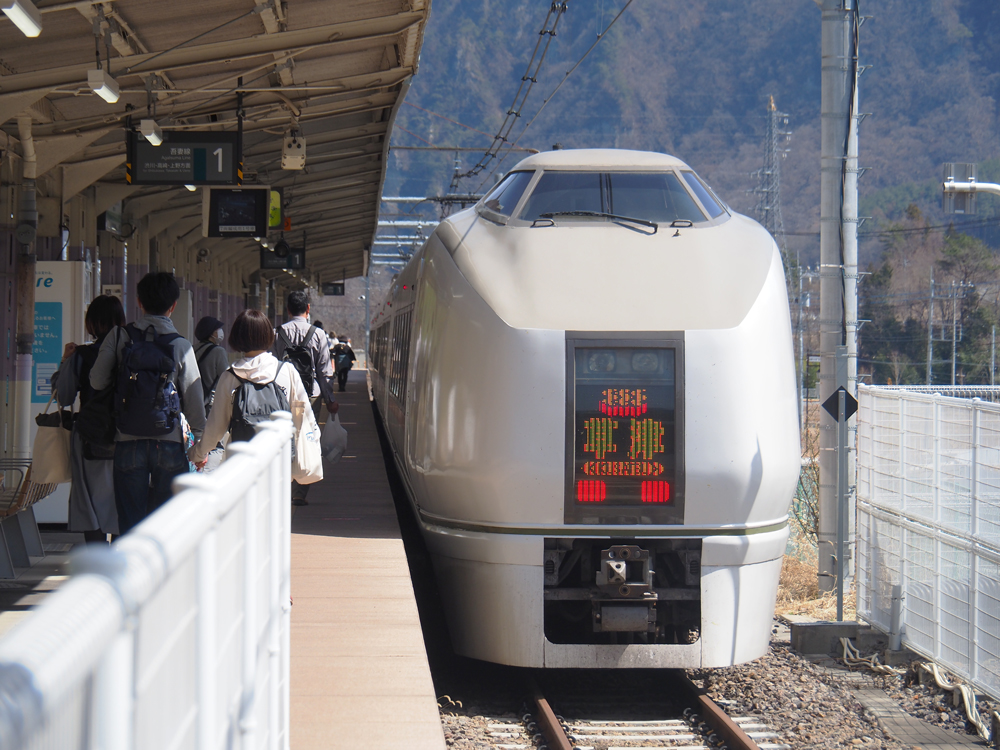 列車で草津温泉へのアクセスはこの特急草津がメインとなり、車内はまぁまぁの混雑気味です。