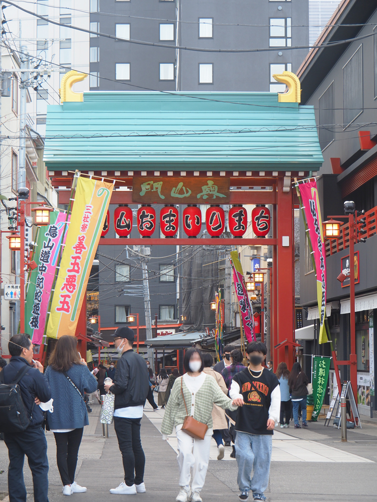 江戸時代浅草寺の境内で奥山と呼ばれた見世物や演芸の小屋や茶屋が立ち並ぶ庶民の娯楽の地として賑わったと言われる、奥山門から西側へと進みます。