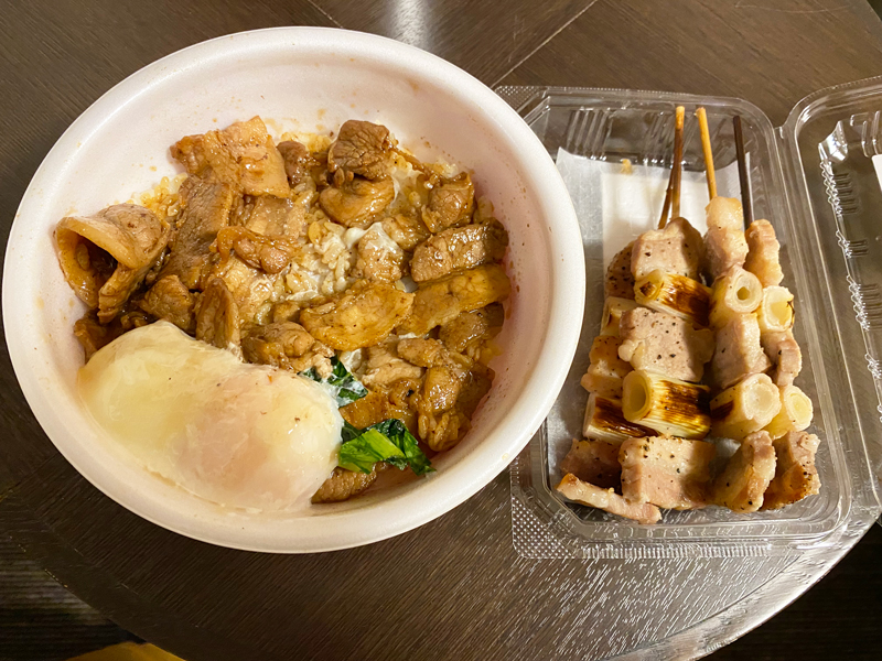 北海道名物、豚丼とやきとり。北海道ではやきとりとは豚串の事を言うらしいです。