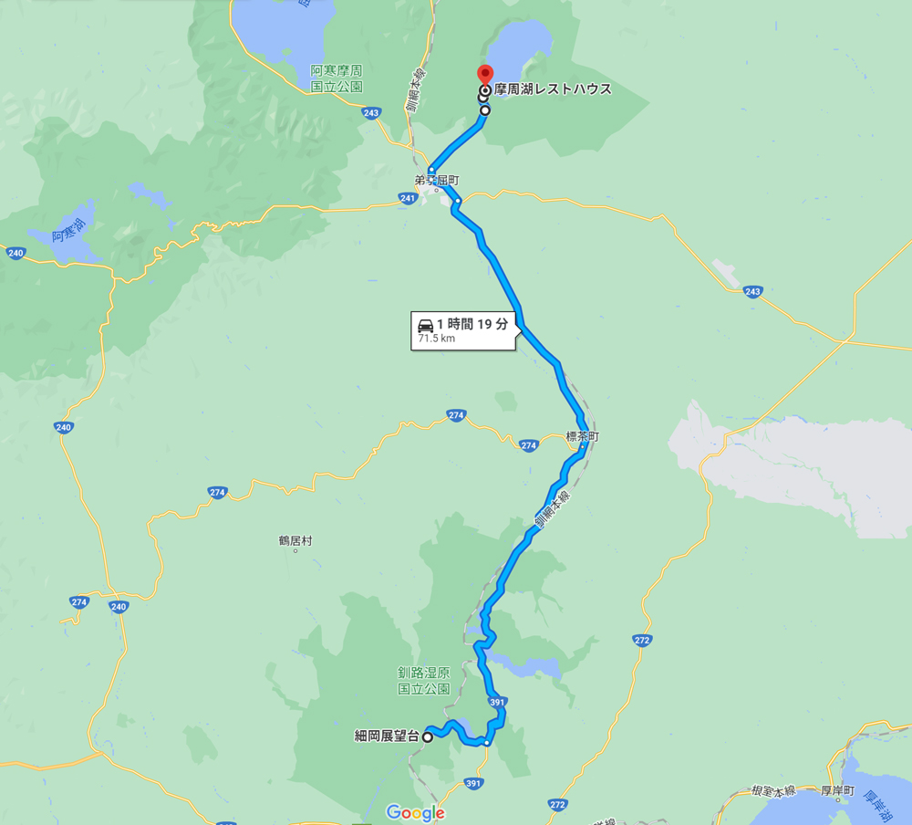 立ち寄ってみるのは、本日の宿泊地、知床斜里までの道中にあたる細岡展望台です。約50分40㎞の道のりです。