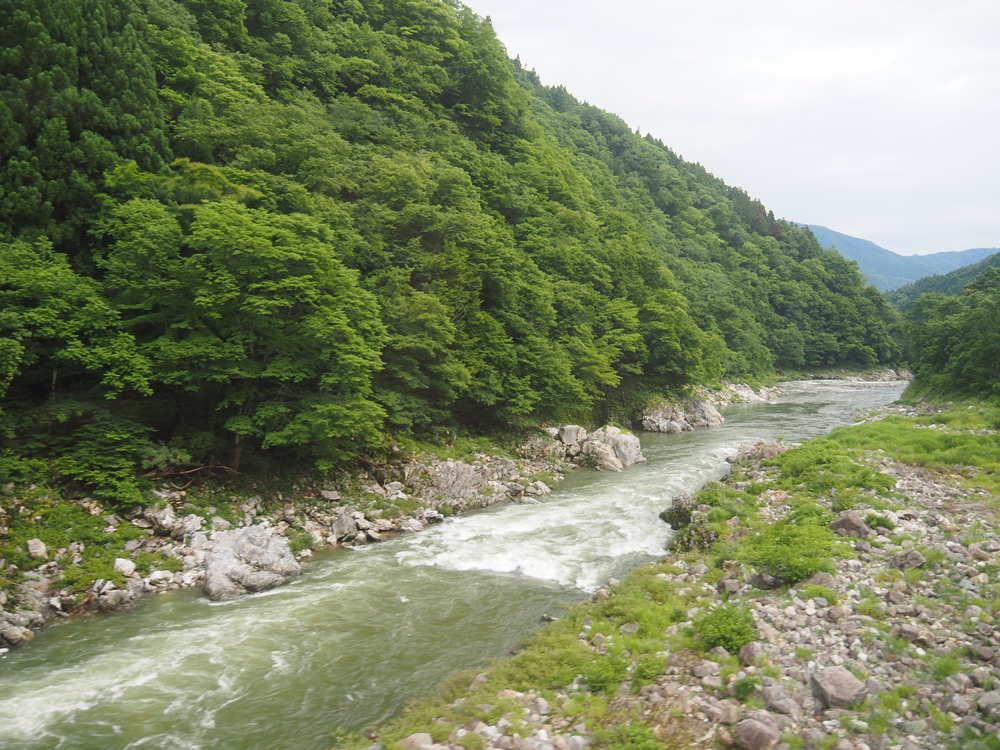 高山本線はこの神通川に沿って飛騨高地の山間を縫って走ります。