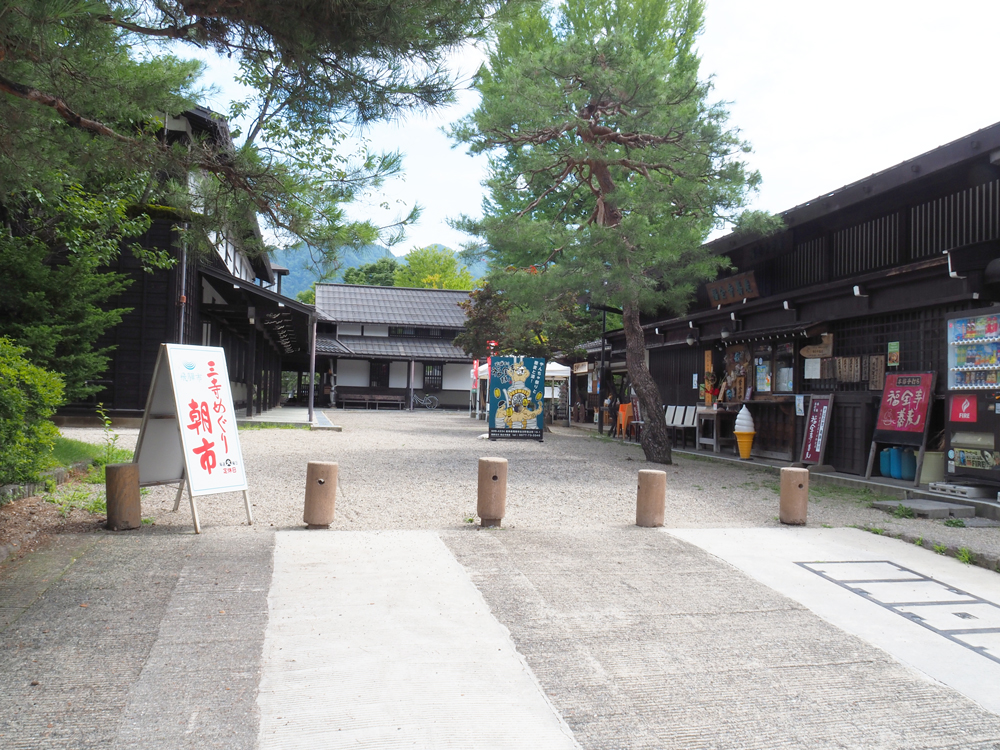 まつり広場の向かいには「三寺めぐり朝市」が開催され、季節の野菜などが並んでおり、向かいには飛騨の匠文化館があり飛騨の匠の技を受け継ぐ地元の大工さんの歴史、技術や道具などが展示されています。