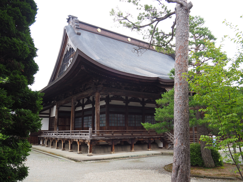 飛騨古川の冬の風物詩「三寺まいり」の時に巡拝する3つのお寺の一つ円光寺です。この時期あじさいが奇麗です。