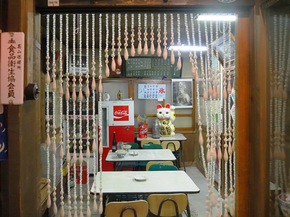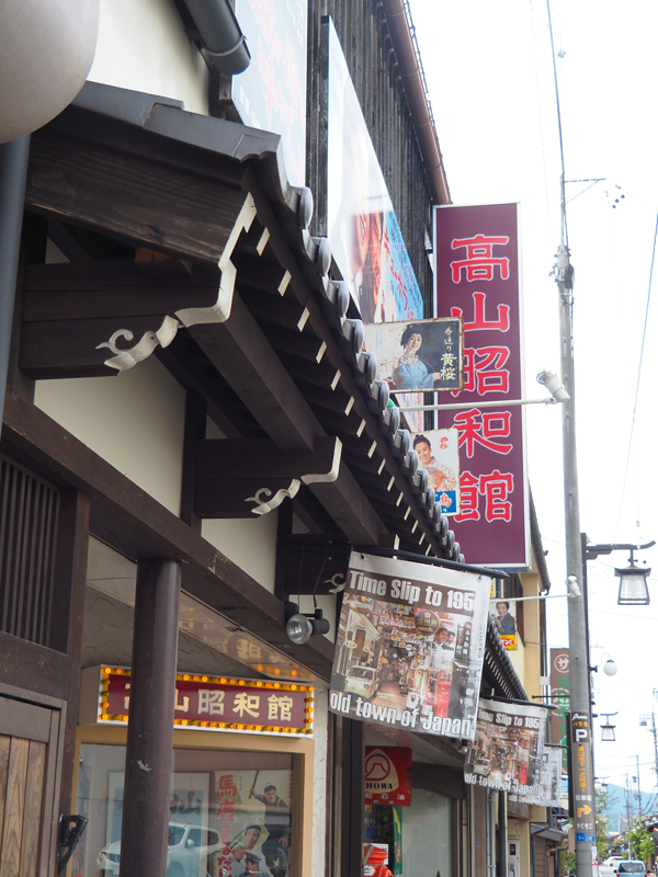 高山の古い街並みにレトロな昭和のネオンの光る建物が不思議とマッチしています。