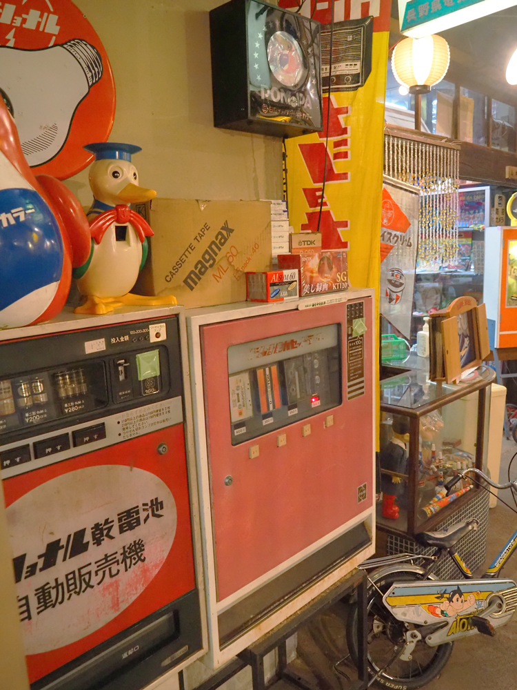 館内は迷路のように少し複雑に進んで行くような構造になっています。レトロな路地裏に並ぶお店やグッズ、昭和感溢れるロゴやフォントがとても懐かしく見入ってしまいます。
