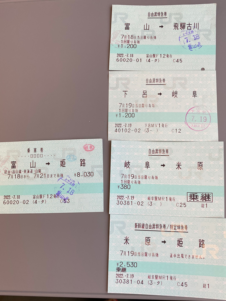旅もいよいよ終盤です。これまで乗車した切符を並べて見返しながら今回の旅を振り返ります。
