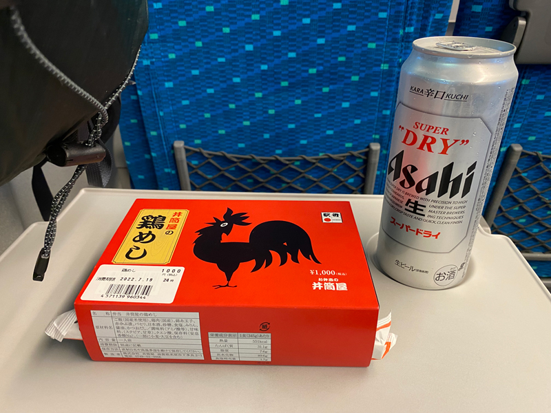 そして米原駅のお弁当屋さんで、ラスト一個の鶏めし弁当をゲットしビールを頂きます~